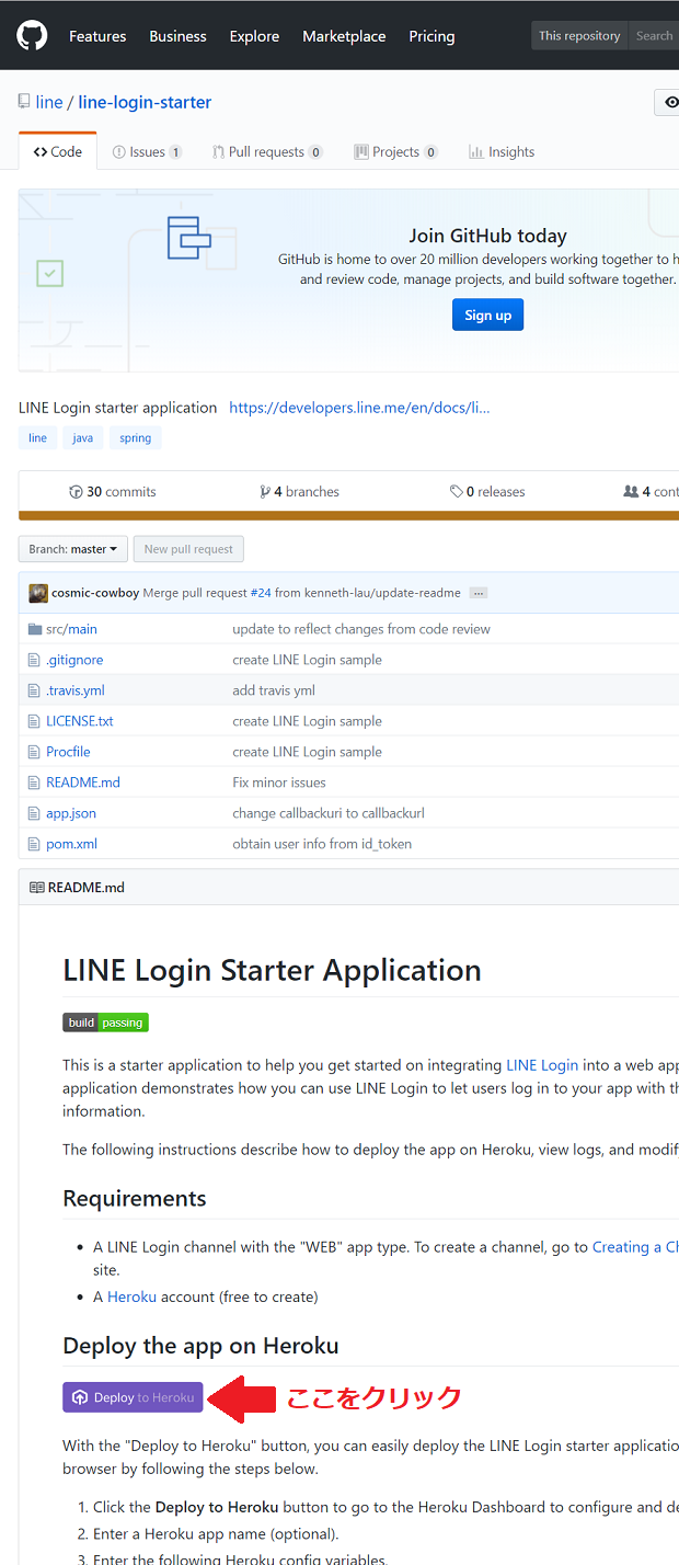 1. GitHubでline-login-starterリポジトリのページを開きます。