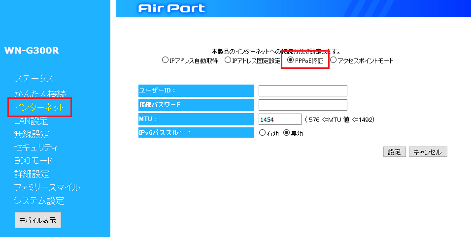 WN-G300RにPPPoEの設定を行いました。