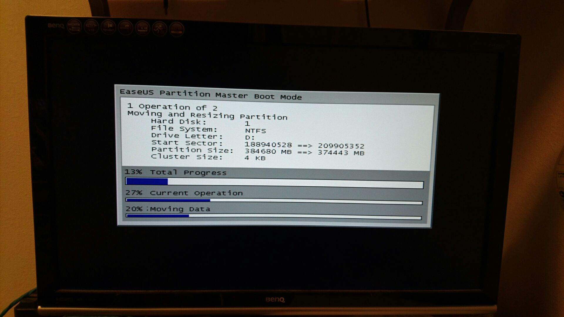 ※私がDドライブの10GBをCドライブに移す操作で10分かかりませんでした。